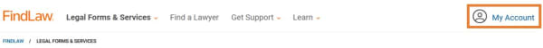 You can access your account my going to FindLaw Legal Forms & Services and selecting the “My Account” button or icon in the upper right.