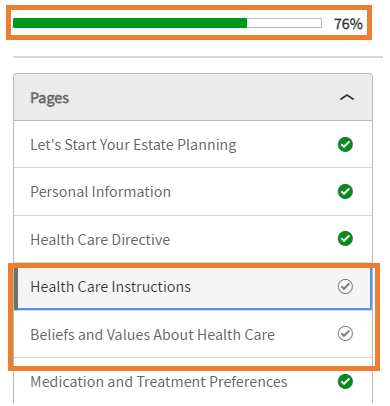 In the desktop view example below, the sections for “Health Care Instructions” and “Beliefs and Values About Health Care” would need to be completed before the form is eligible for download.